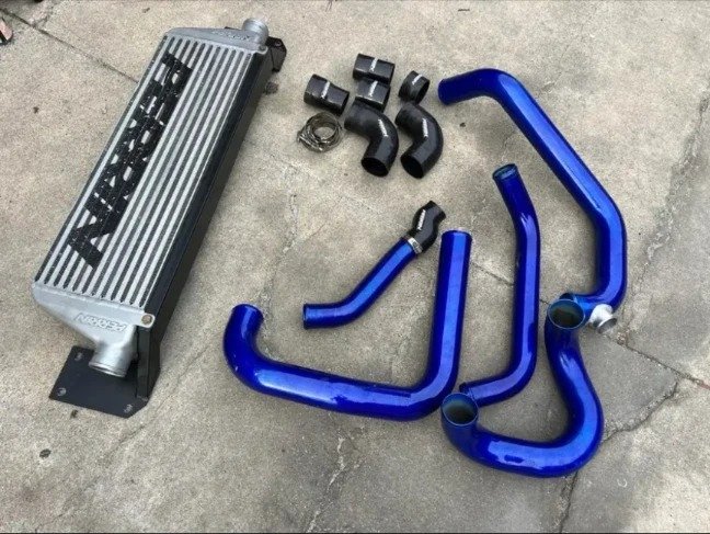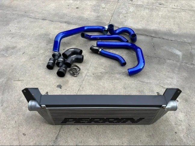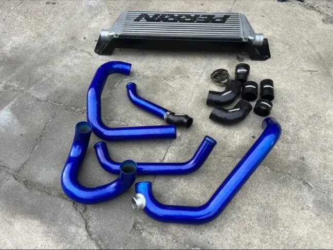 Perrin FMIC Kit for 15-21 STI. Kit has all hoses and couplers included as well as the bash bar. Pipes are galaxy blue pearl.