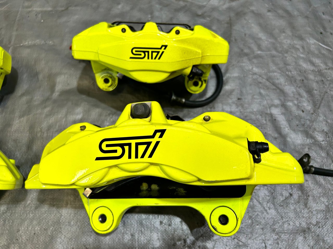 Subaru Front Neon Yellow Brembo Calipers 6 Piston
